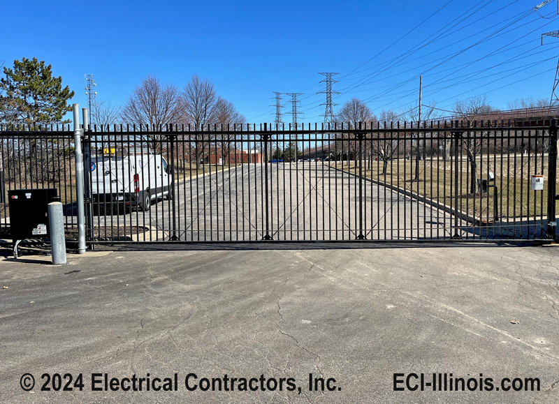Last year ECI was called to this Naperville, IL location where we installed a Linear® Slide Gate Operator to replace an older operator and also match other slide gate operators installed on site. The operator is shown in the image above to the far-left center. It is the large black rectangular housing partially hidden by the bollard.